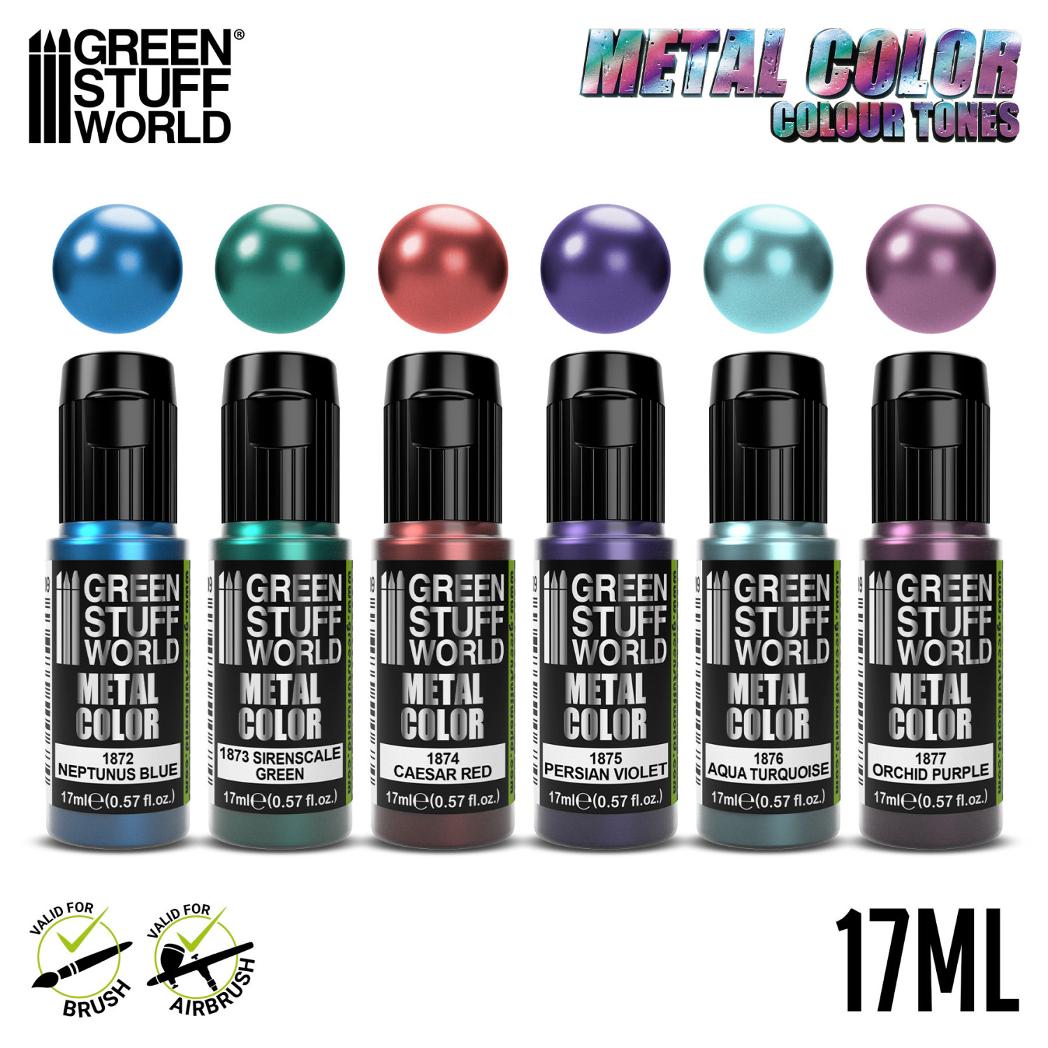Each bottle of these metallic paints includes a stainless steel ball for a faster and more homogenous mixture.