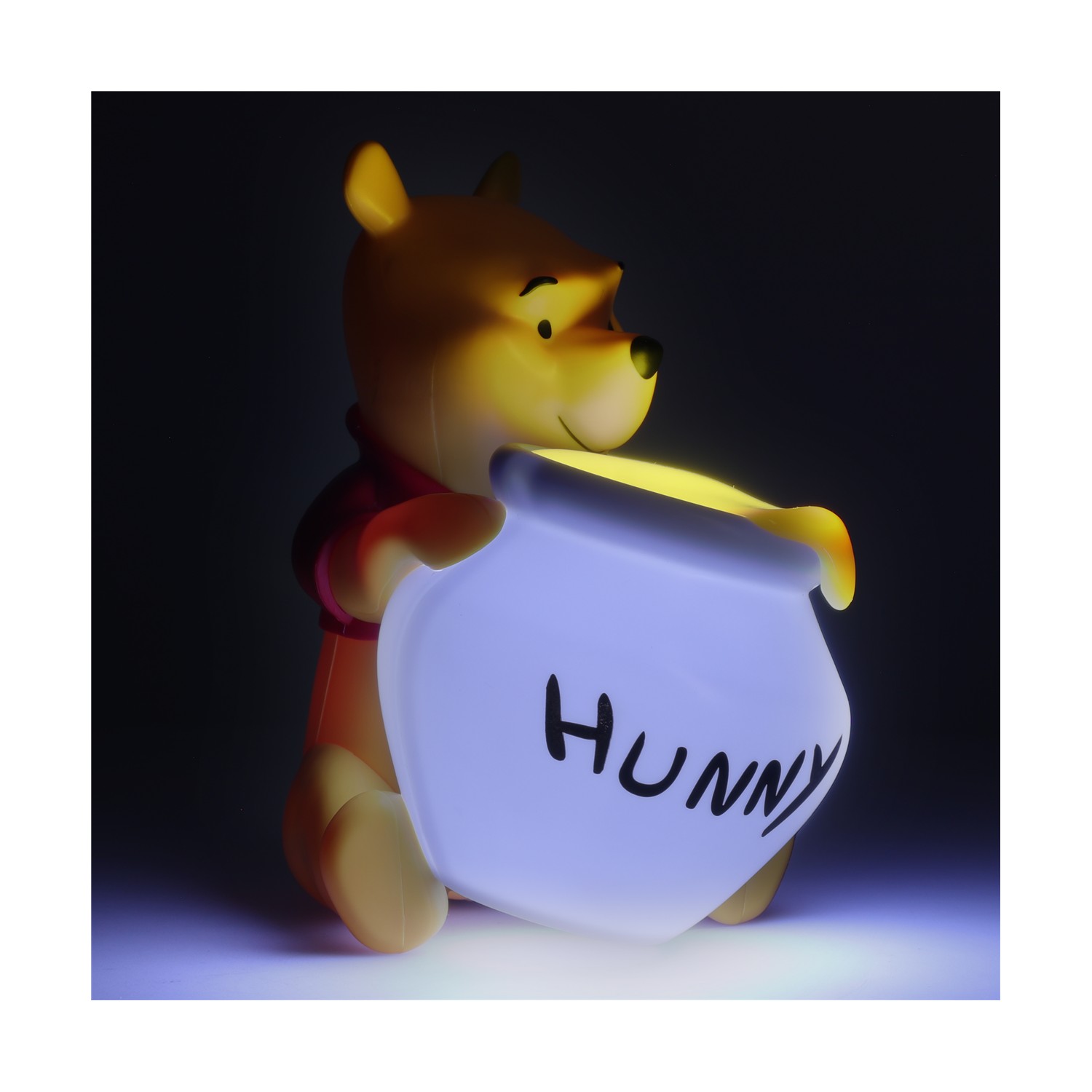 Το φωτιστικό Winnie the Pooh έχει ύψος 16,5 εκατοστών και είναι σχεδιασμένο σε σχήμα του αγαπημένου κίτρινου αρκούδου από το Hundred Acre Wood, ο οποίος κρατάει την αγαπημένη του κατσαρόλα με “μέλι”.