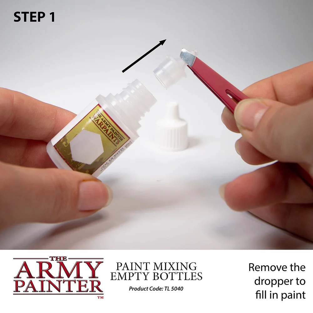 These 12ml paint bottles are used to customize your paint by mixing different colours together. See-through labels let you see your new custom paint colour. You also get space on the label to make notes on what paint was mixed in.